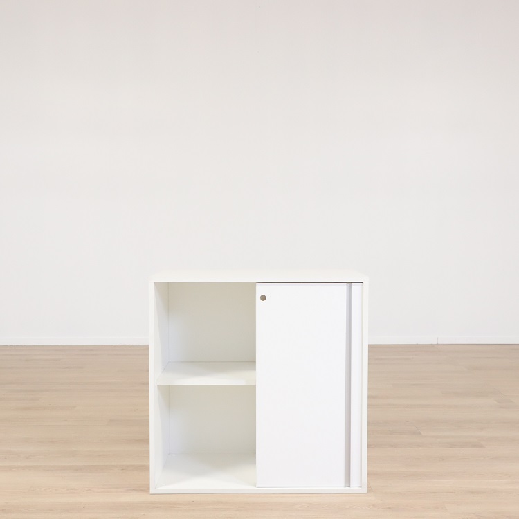 Den nätt designen gör att skjutdörrsförvaringen passar utmärkt även i mindre utrymmen där varje kvadratmeter räknas. Med dess rena linjer och diskreta handtag passar förvaringen in lika väl på arbetsplatsen som i hemmet.