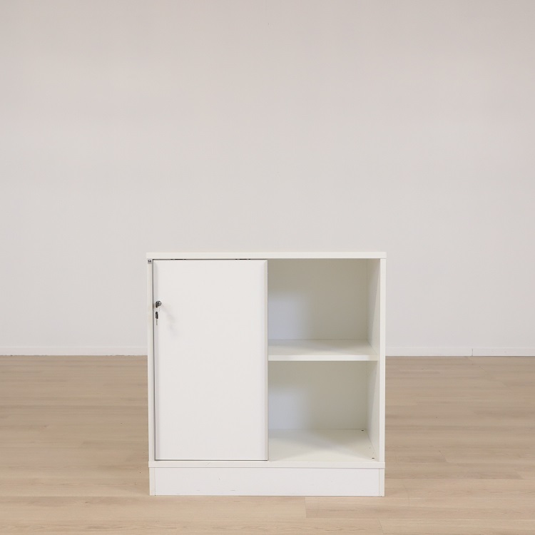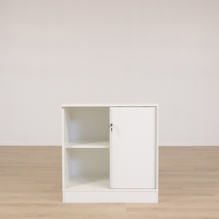 Snitsa kommer här i ett helvitt utförande, som med sin slitstarka laminat och hållbar konstruktion som klarar belastning och förflyttning på ett optimalt sätt. Invändigt är den utformad med ett hyllplan som möjliggör denna förvaringslösning till en enkel sortering och åtkomst till dina föremål eller dokument.