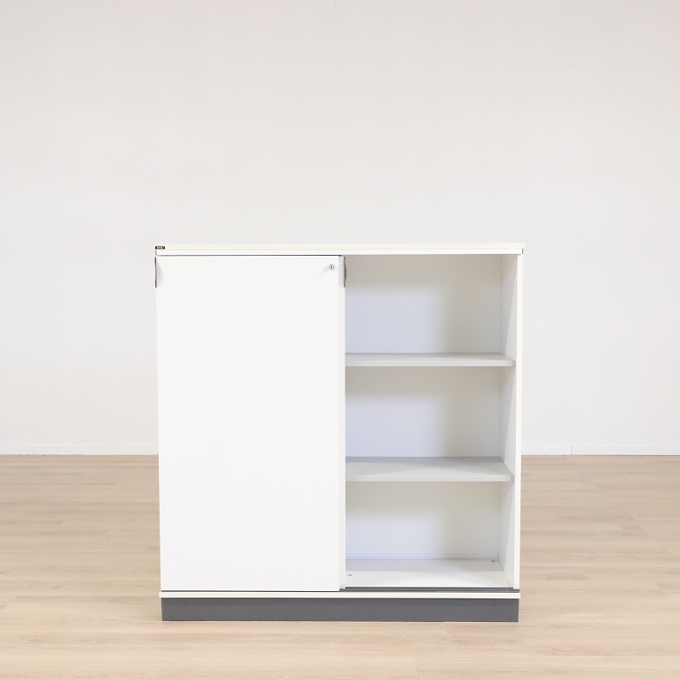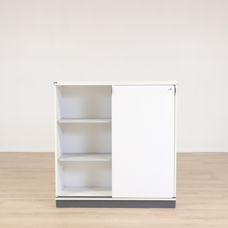 Skjutdörrsförvaringen Tendo från finska ISKU är ett stilrent skåp med små, välgenomtänkta detaljer, som gör skåpet ytterst funktionellt. Ta bara i de diskreta handtagen som gör skåpet lätt att öppna och stänga. Skjutdörrarna är perfekta för mindre ytor då man aldrig behöver tänka på att kunna öppna dörren. Inuti skåpet finns två hyllplan, tre fack, för effektiv förvaring av pärmar och annan kontorsutrustning. Tendo har en tidlös vit färg med en mörkgrå sockel.