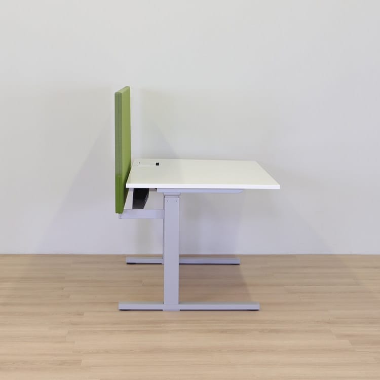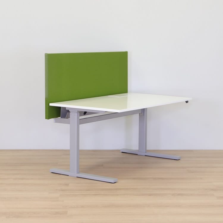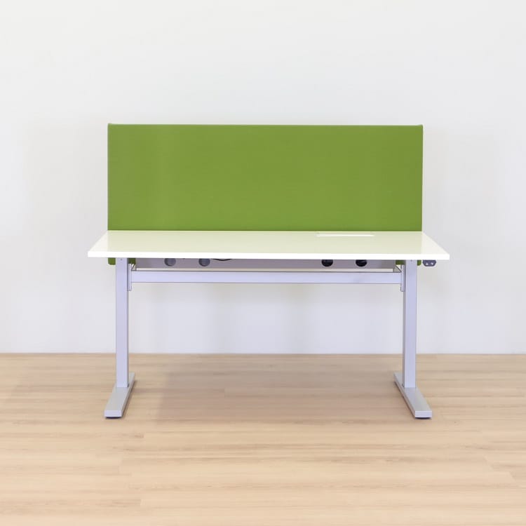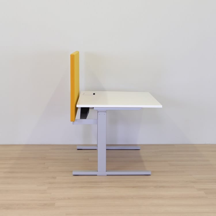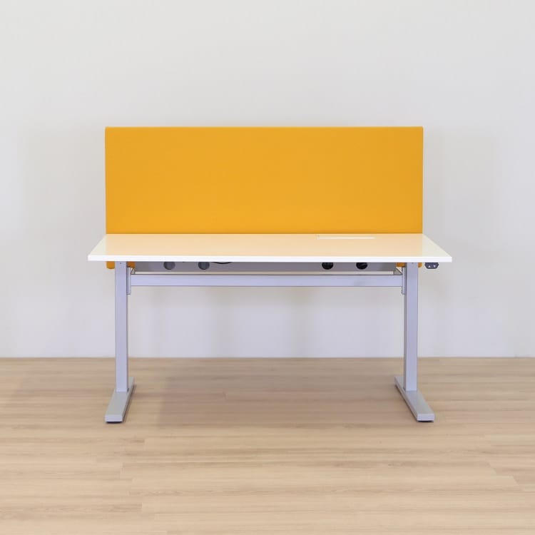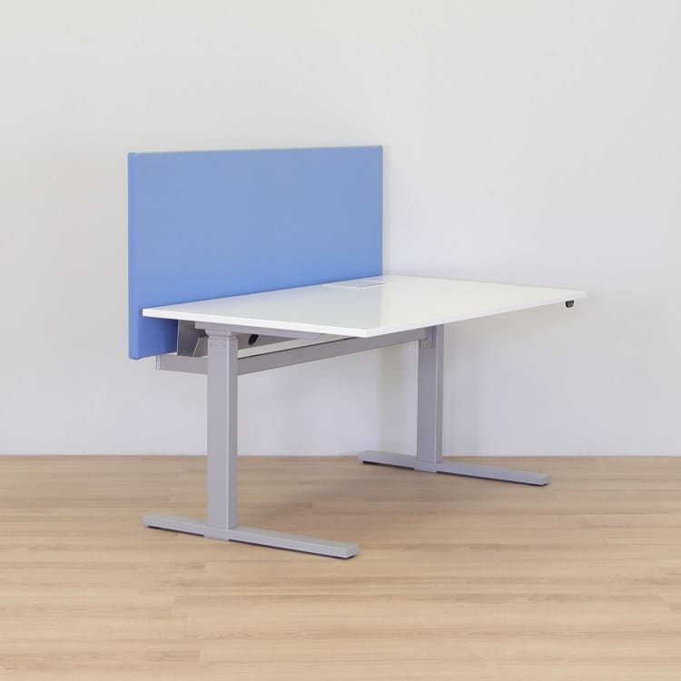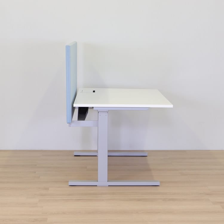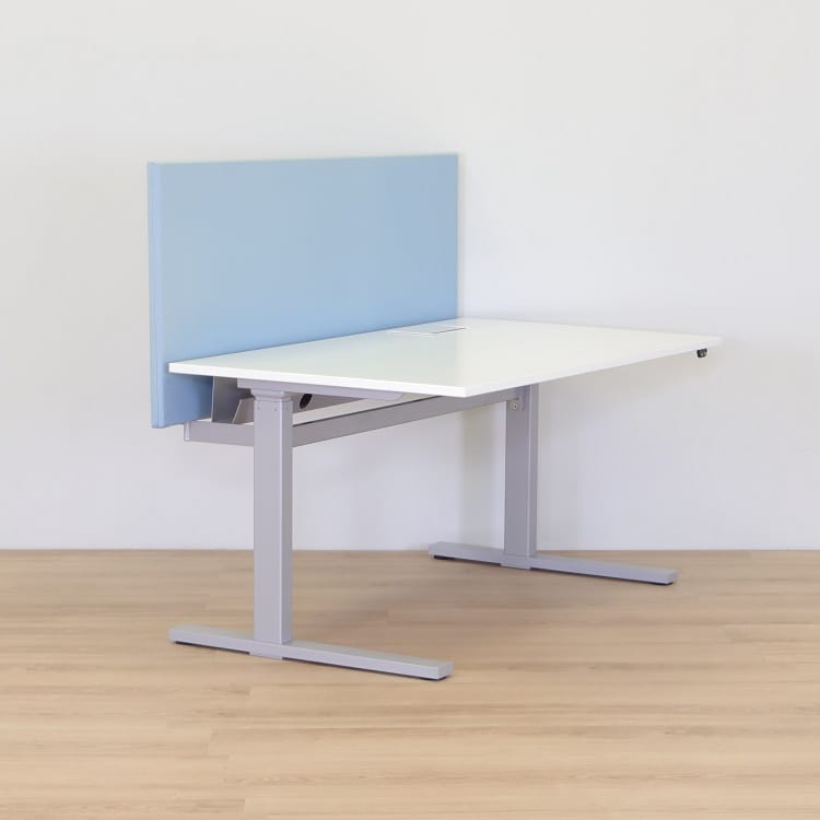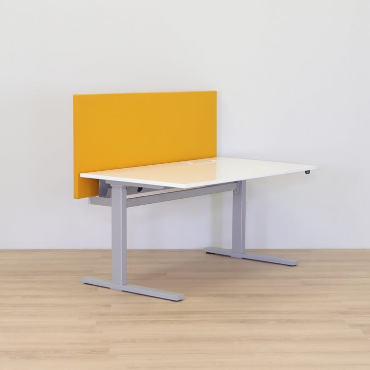 Skrivbord med integrerad bordsskärm från Ragnars, klädd i högkvalitativt, ljuddämpande tyg för en bullerfri arbetsmiljö. En bordsskärm ger en viss avskildhet vilket ökar koncentrationen och effektiviserar arbetet. En annan fördel med en bordsskärm är möjligheten att använda den som anslagstavla där man kan sätta upp viktiga papper eller foton för att göra arbetsplatsen mer ombonad. Skrivbordet har även integrerat kabelhål samt kabelkorg för smidig hantering av sladdar.