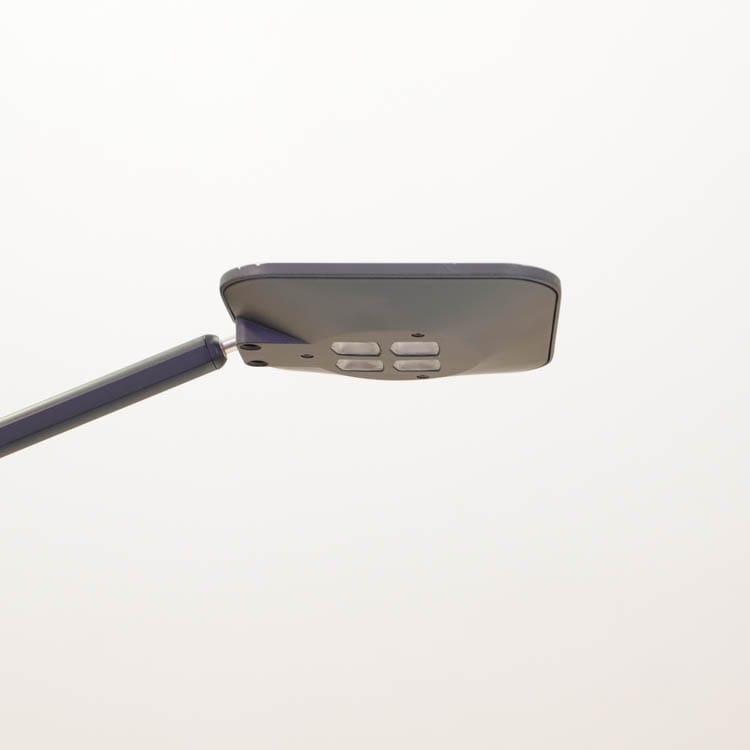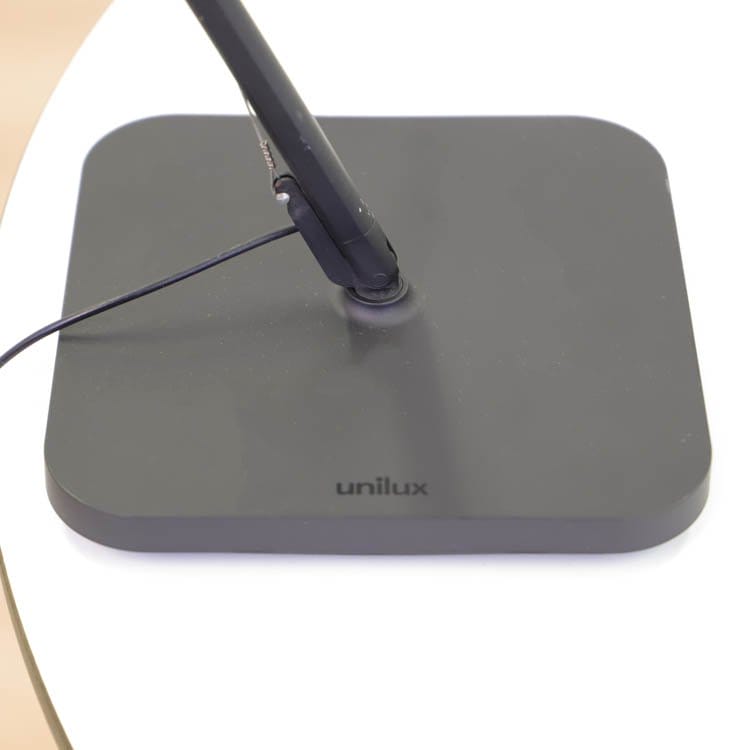 För optimal justering har skrivbordslampan två justerbara armar med inre dragsko, ett lutande och vridbart lamphuvud samt en flexibel fotled som kan roteras 360°. Den stabila foten är konstruerad med en möbelvänlig lampbotten som är särskilt anpassad för användning på filtgolv.