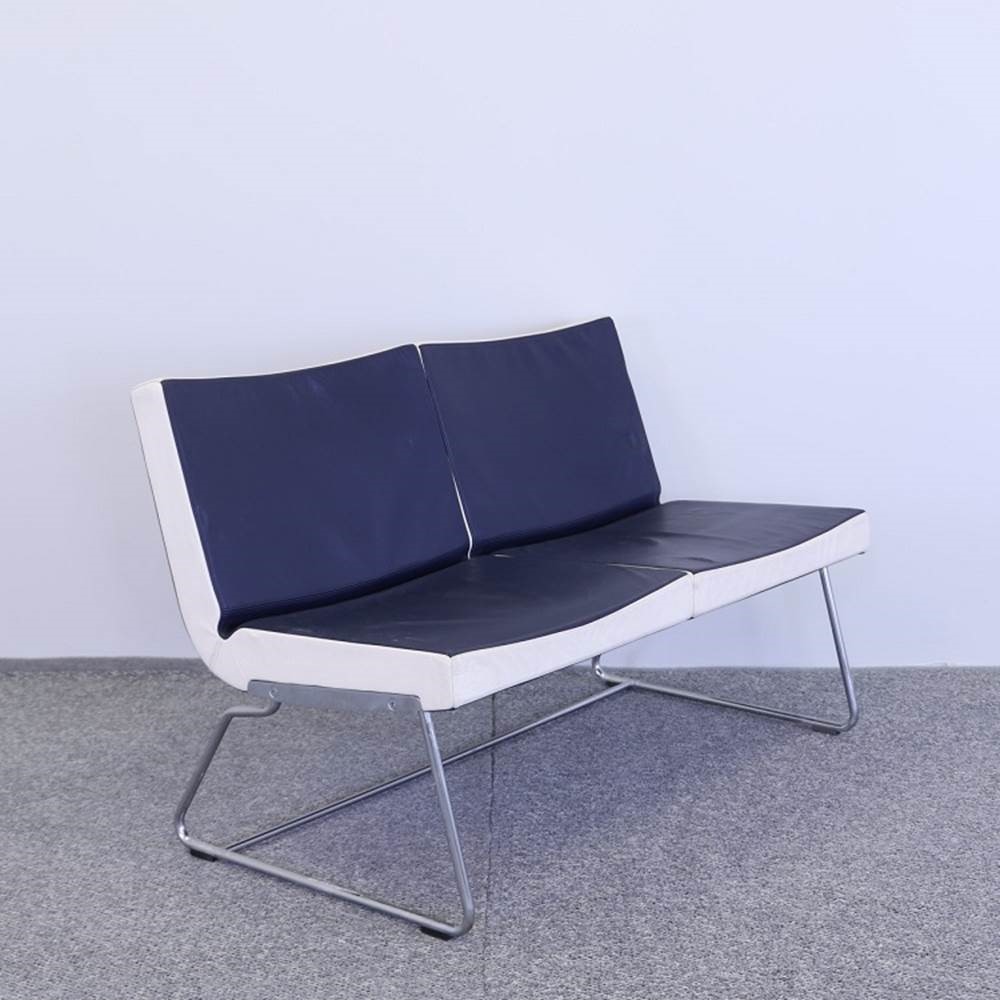 Soffan A-line är designad 2004 av Anya Sebton för svenska möbeltillverkaren Lammhults. Grundidén var att skapa en nätt, högkvalitativ soffa med tunna linjer utan att tumma på komforten, vilket A-line verkligen lever upp till. A-line är en 2-sits soffa med mörk indigoblå, näst intill svart, och vit läderklädsel med ben i silvergrått utförande. Sofforna passar perfekt i receptionen, cafeterian eller matsalen då den är enkel att torka av och hålla ren under. Stommen är i Plywood och stoppad med formgjutet kallskum för högsta komfort.