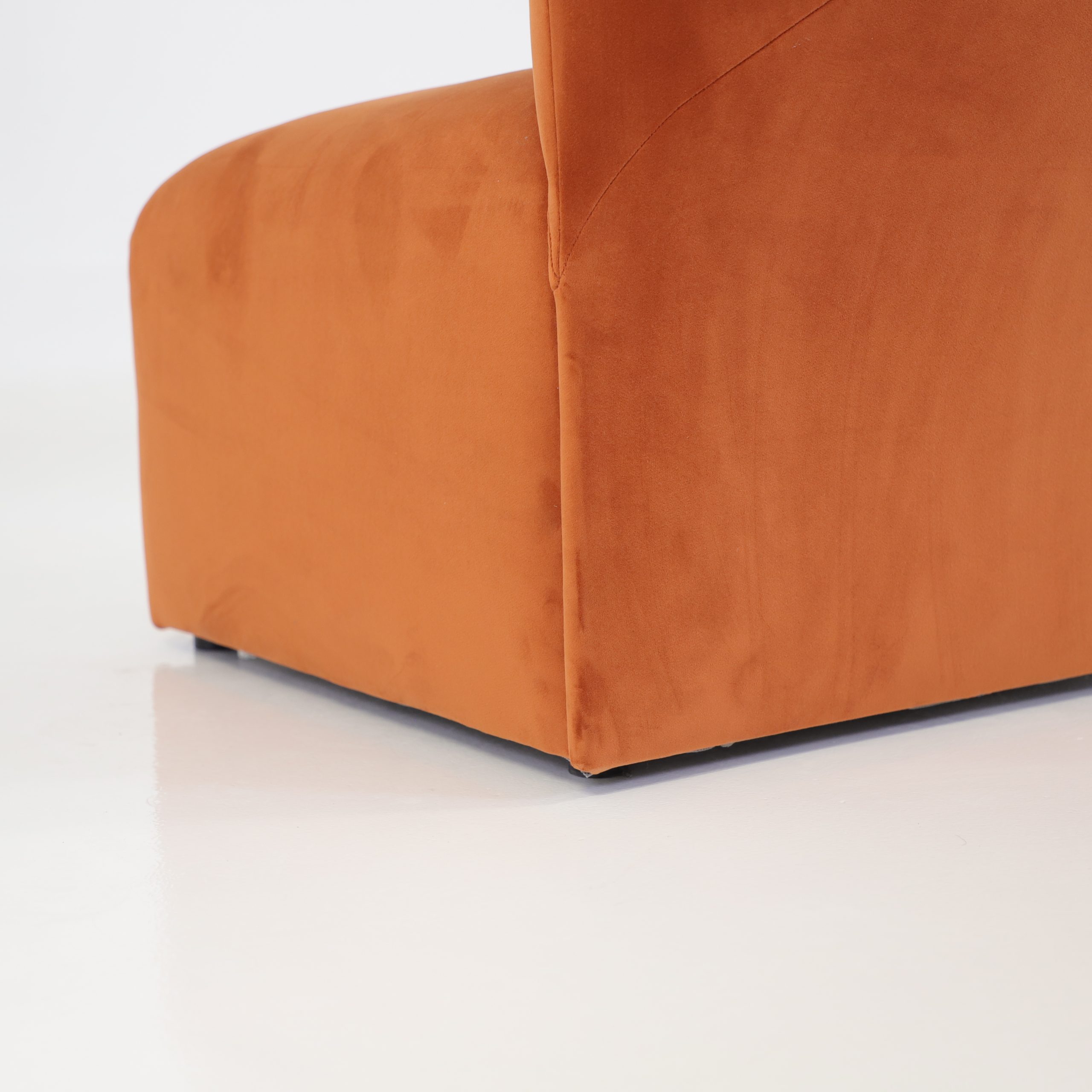 Soffan är byggd av moduler, vilket gör den enkel att komplettera med fler moduler för att anpassa storlek och form efter rum och enskilt behov. Klädd i slitstark sammet av hög kvalitet i en varm orange ton vilket gör Blob både till en hållbar och stilfull investering.