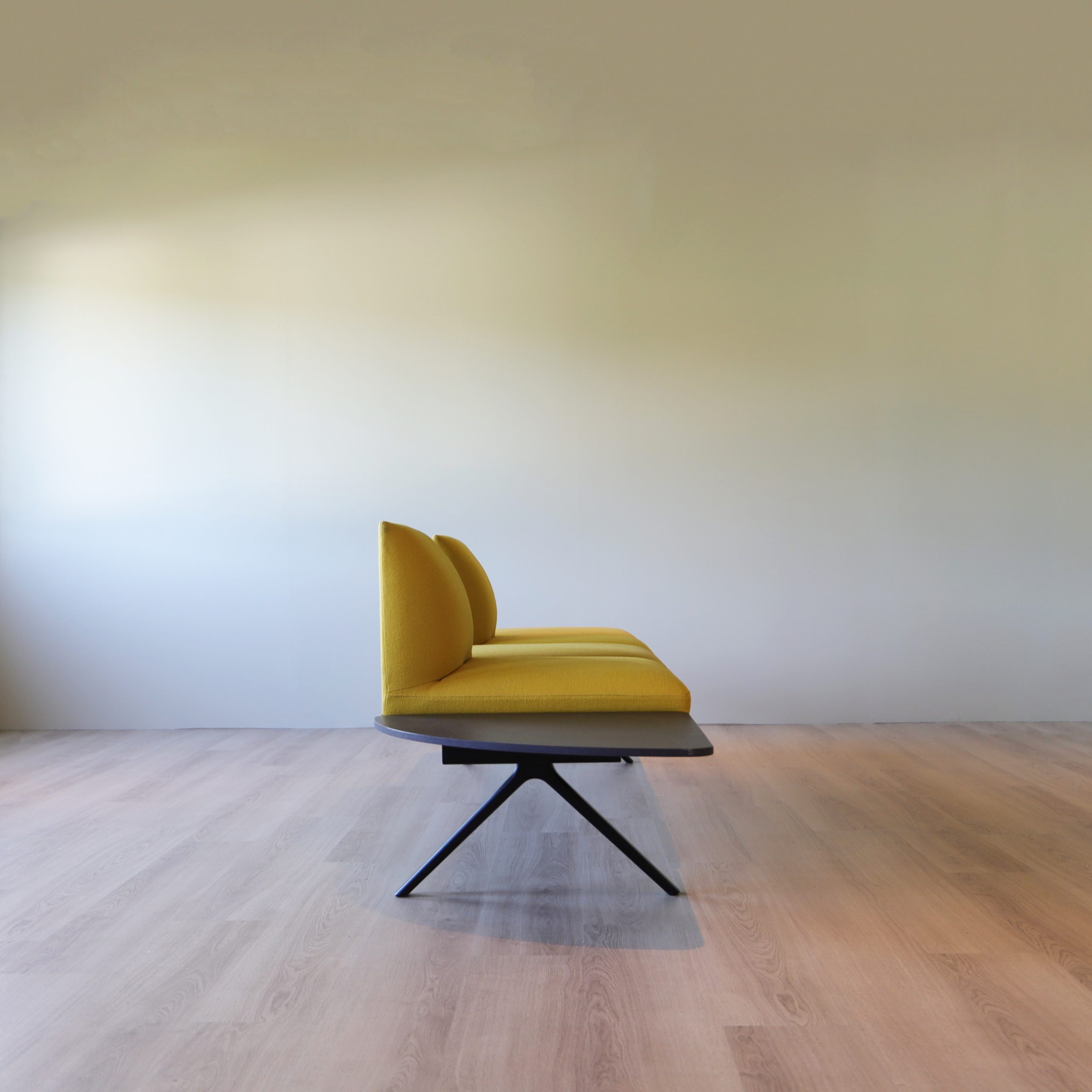 Den som väntar på något gott väntar aldrig för länge brukar man ju säga. Vi vet inte riktigt vad vi känner om det uttrycket, men måste man sitta och vänta på något så gör man gärna det i den här kompletta väntrumsgruppen i gult från italienska Arper. Soffan Kiik är funktionell på det sättet att den har såväl mjuka sittplatser som snygga och praktiska avställningsbord inbyggt. Flexibel soffgruppgrupp som kan kombineras till hörnsoffa men som även kan brukas separat, se produktbilder. Soffan kommer i tre gula nyanser som kompletterar varandra väl, det märks att det lagts ned mycket eftertanke i denna eleganta möbel.