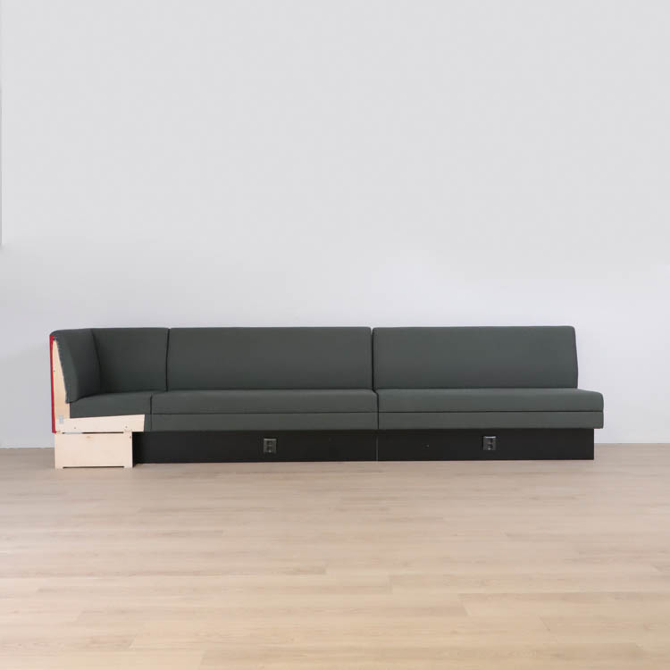 Observera att soffan saknar hörndel. Optimal för inbyggnad.