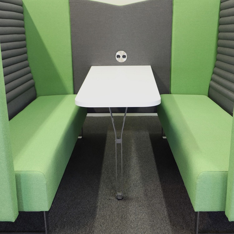 Behöver du en paus från bruset på kontoret, ha ett privat möte eller ta ett telefonsamtal i enskildhet? Då är tresitssoffan Mr Box från märket Scan Sørlie det perfekta komplementet till kontorets övriga rum för att skapa flera tysta zoner. Med denna soffa får du ett rum i rummet och har fördelen av att vara flexibel i sin placering. Placeras med fördel i en foajé, en lobby eller andra sociala zoner. Två eluttag där du kan ladda din elektronik medan du sitter bekvämt i denna ljudabsorberande soffa samtidigt som det kommer med en bordsskiva för att underlätta arbete med en ergonomisk sittställning.