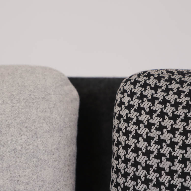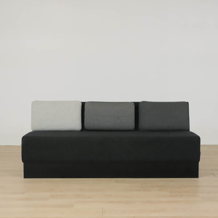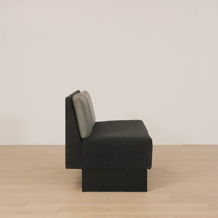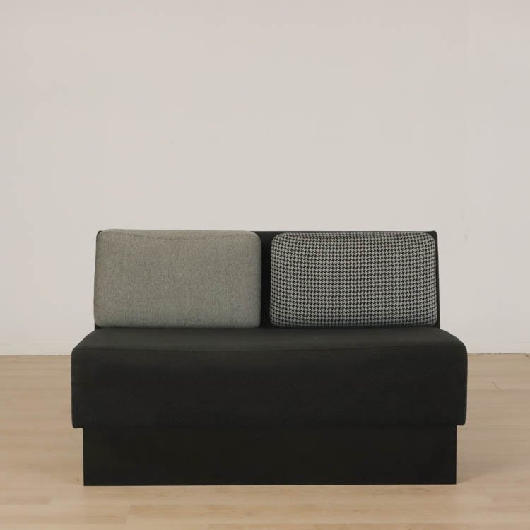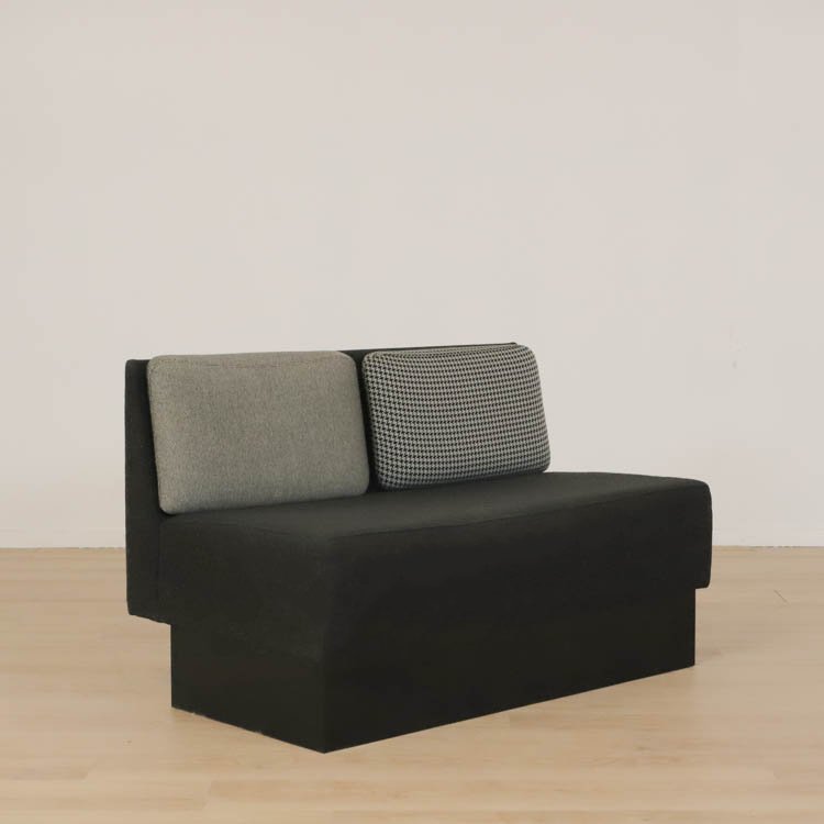 Modulsoffan Playback från Offecct kommer här i mörkgrått utförande. Playback går att ställa bredvid eller mittemot varandra och kombinera efter eget önskemål vilket gör den perfekt för att anpassa efter just ditt utrymme. Soffan placeras lika väl i loungen som i receptionen. Soffan på 180 cm kan sammankopplas, där en del av den rymmer plats för 3 personer och soffan på 120 cm har plats för 2 personer. Här klädd i grå toner. Soffans kuddar är avtagbara och enkla att byta, kan variera något i utseende.