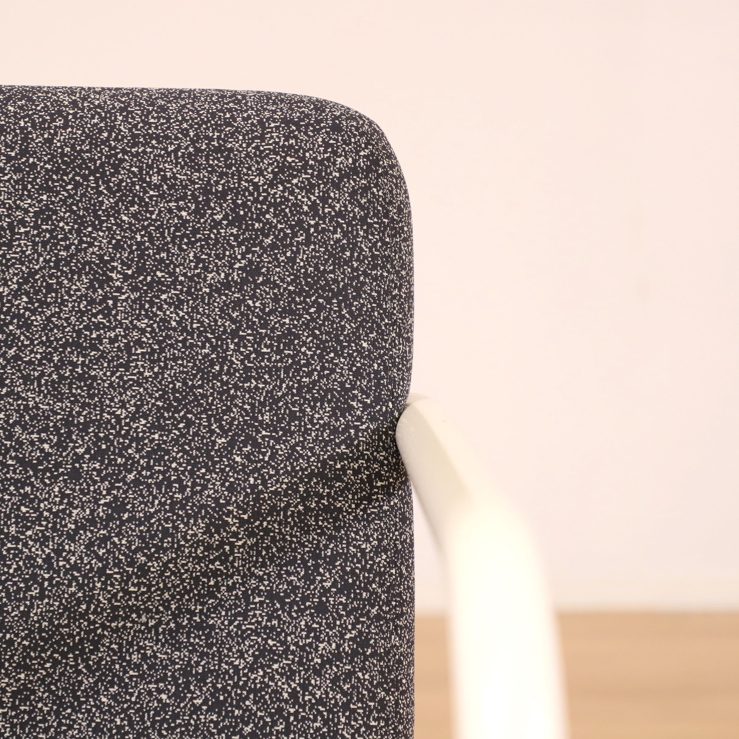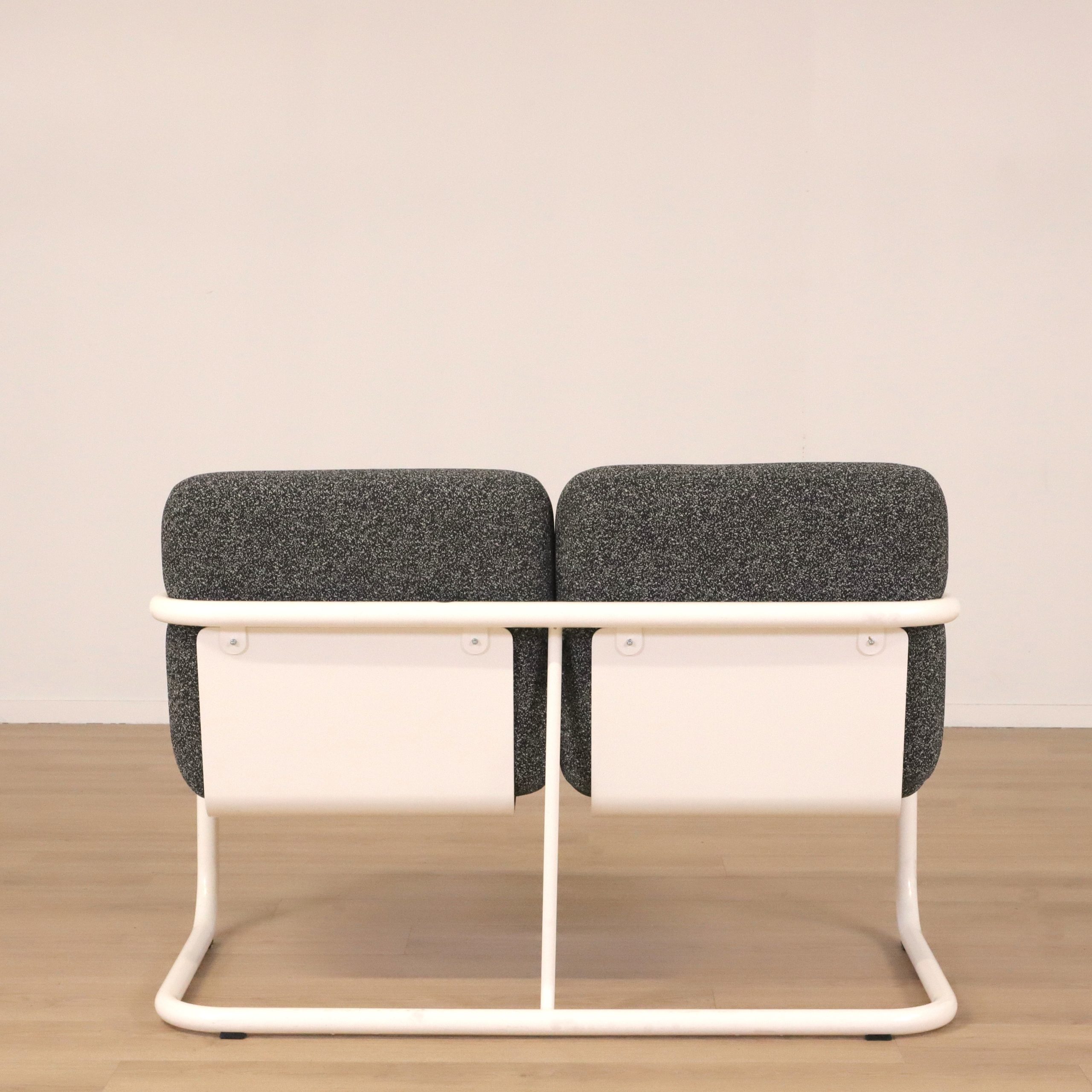 Med sin lekfulla design, kraftiga stålrör och tjockt klädda dynor får soffan både bekvämligheten och stilen.