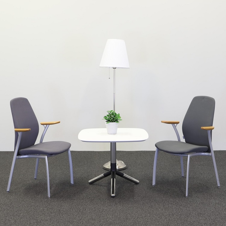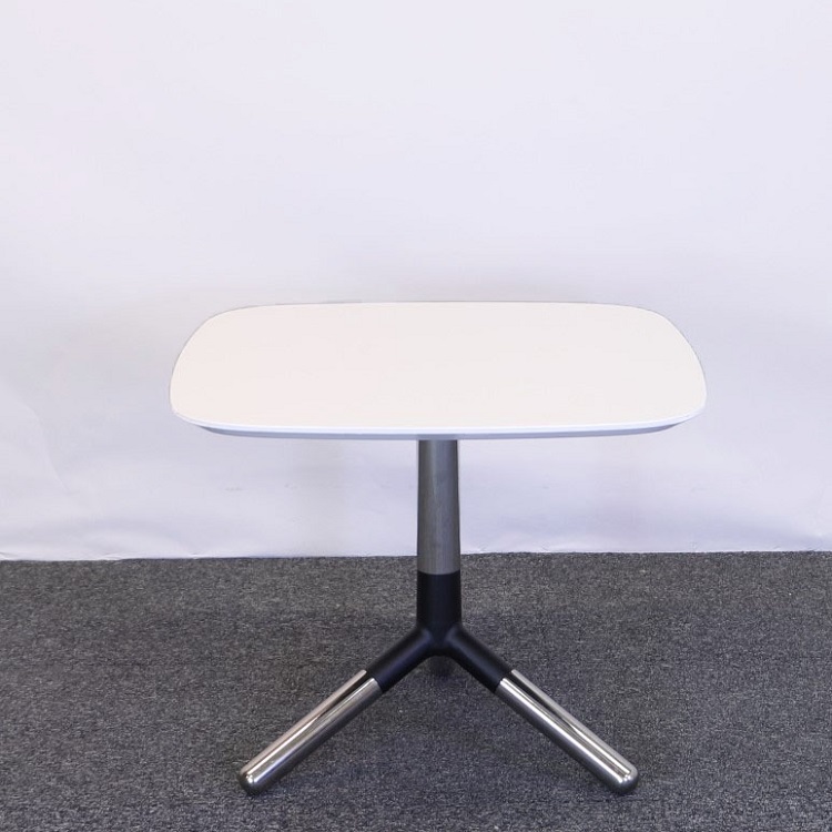 Obi är japanska och syftar på det långa skärp som knyter och håller samman den japanska kimonon. Obis knut av pressgjuten aluminium ger bordsstativet dess starka formidentitet. Benen är av massiv, förkromad aluminium i 3-kryss som gör att bordet står stadigt även på ojämnt underlag. Den vita bordsskivan som är fyrkantig med rundade hörn ger det mjuka intrycket som en rund bordsskiva ger men behåller en generös yta med dess kvadratiska form.