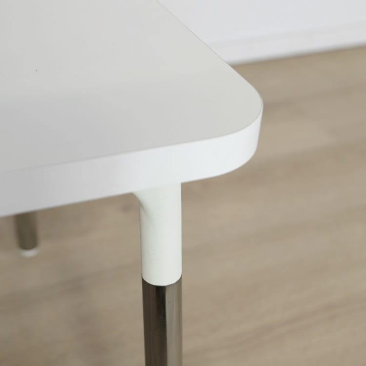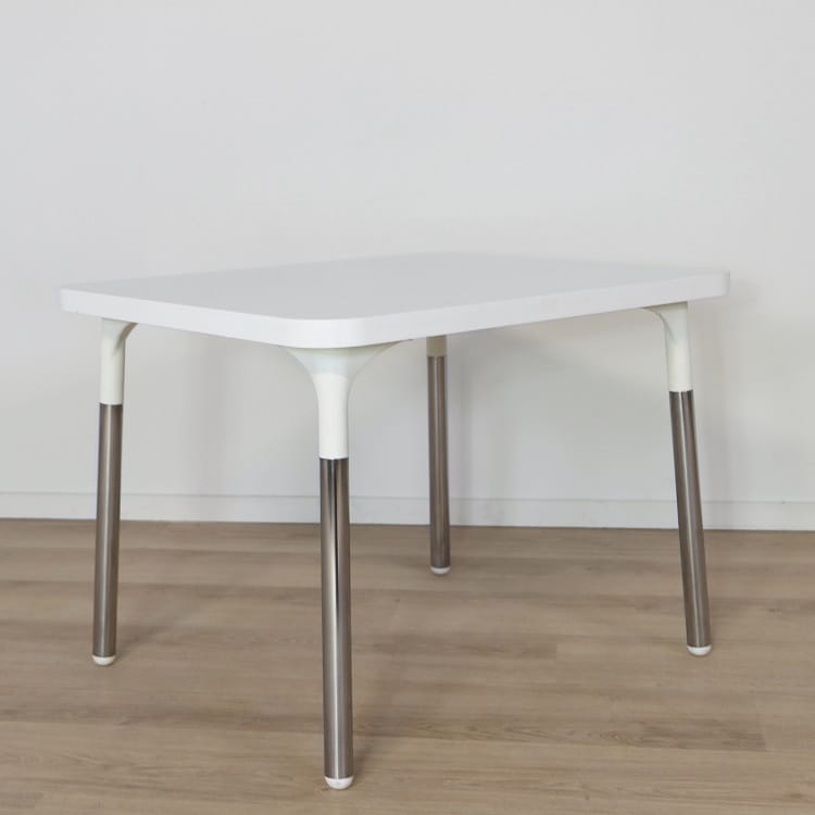 Ytan i högtryckslaminat tål daglig användning och rengöring. Bordsben i förkromat stål och pulverlackad aluminium.