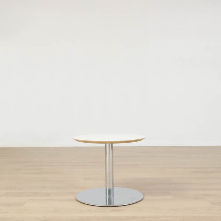 Det lilla soffbordet från Swedese är en perfekt kombination av stil och funktionalitet. Med sin runda, vita bordsskiva ger det ett rent och modernt intryck som smälter in i alla typer av inredningar. Bordsskivan erbjuder en slät och elegant yta som är både lätt att rengöra och hållbar.