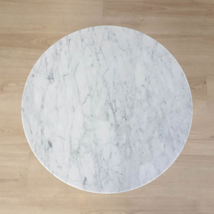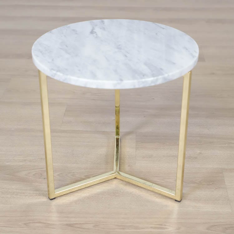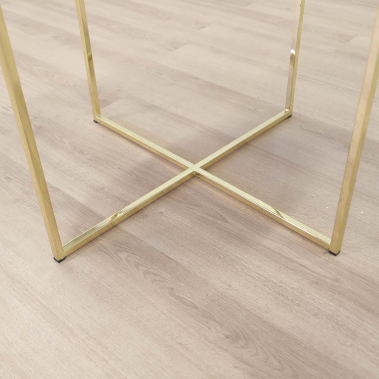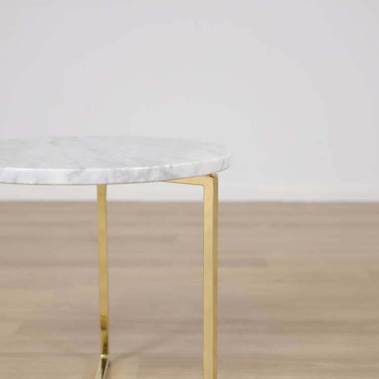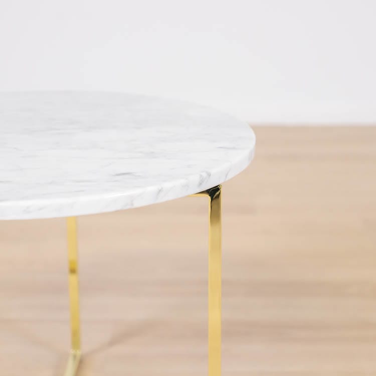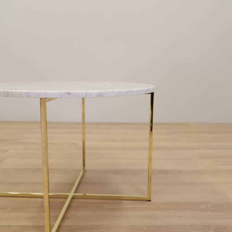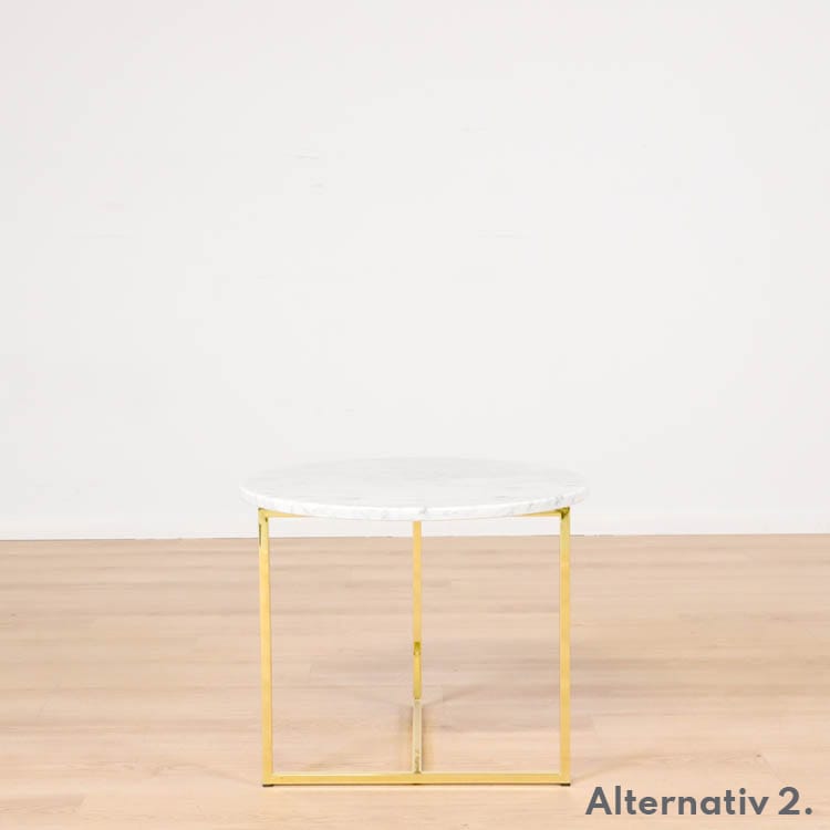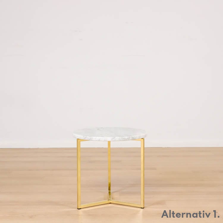 Bilden av sofistikerad elegans tar form med detta enastående soffbord. Det är tillverkat av vacker marmor som förmedlar en känsla av tidlös skönhet och exklusivitet. Detta omsorgsfullt utformade soffbord vilar på ett förtrollande guldstativ, vars gnistrande yta bär med sig en aura av lyx och överflöd.