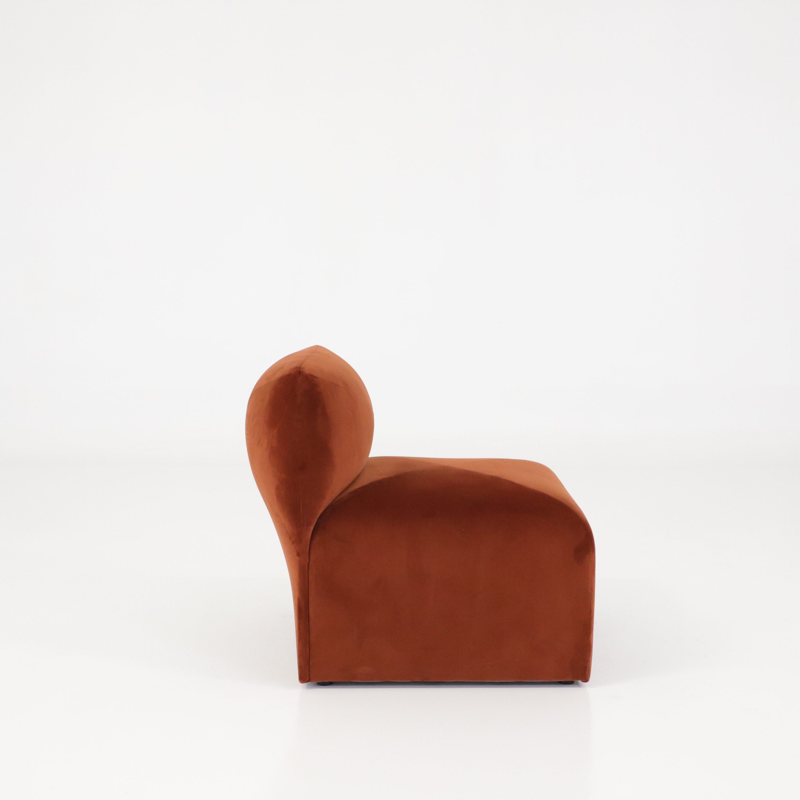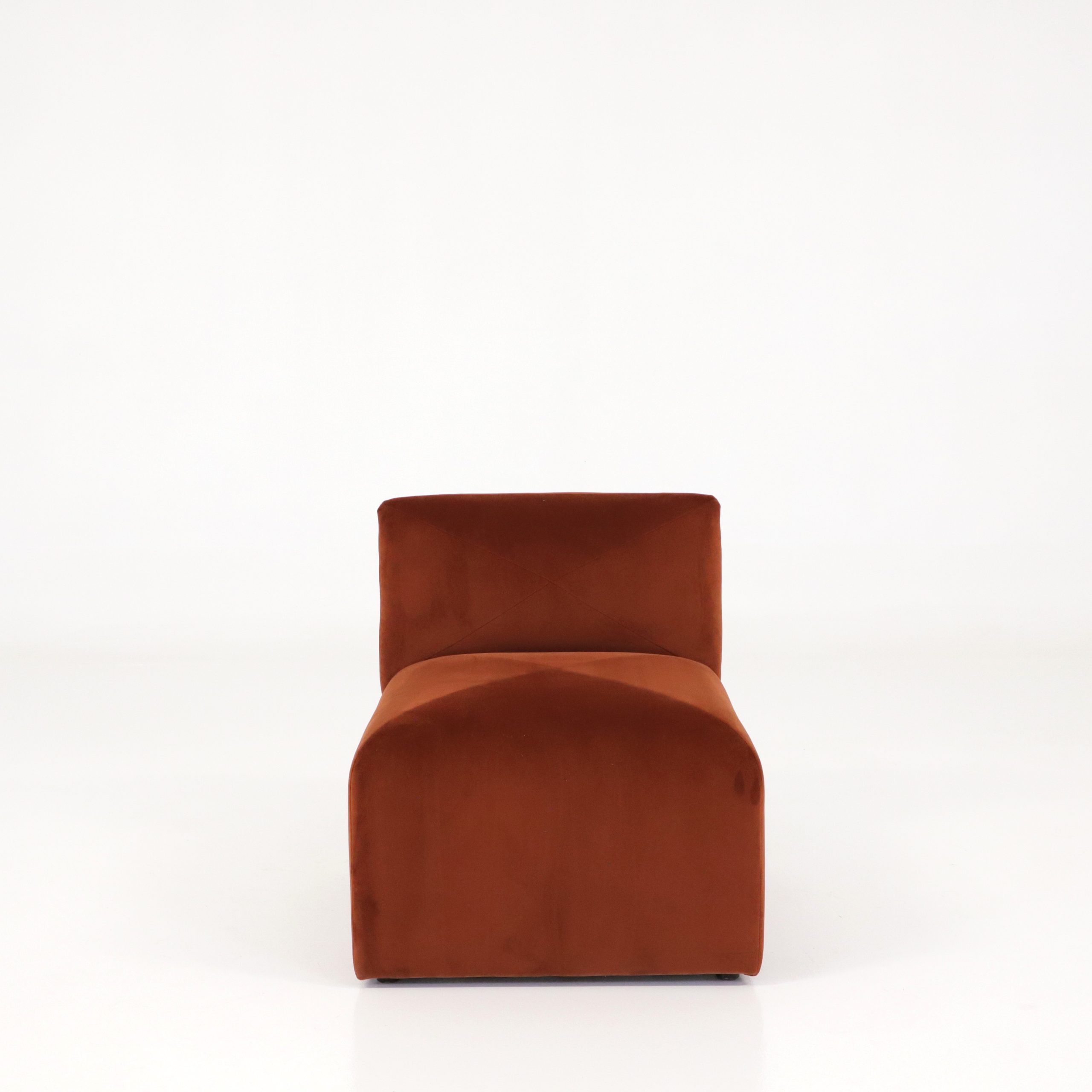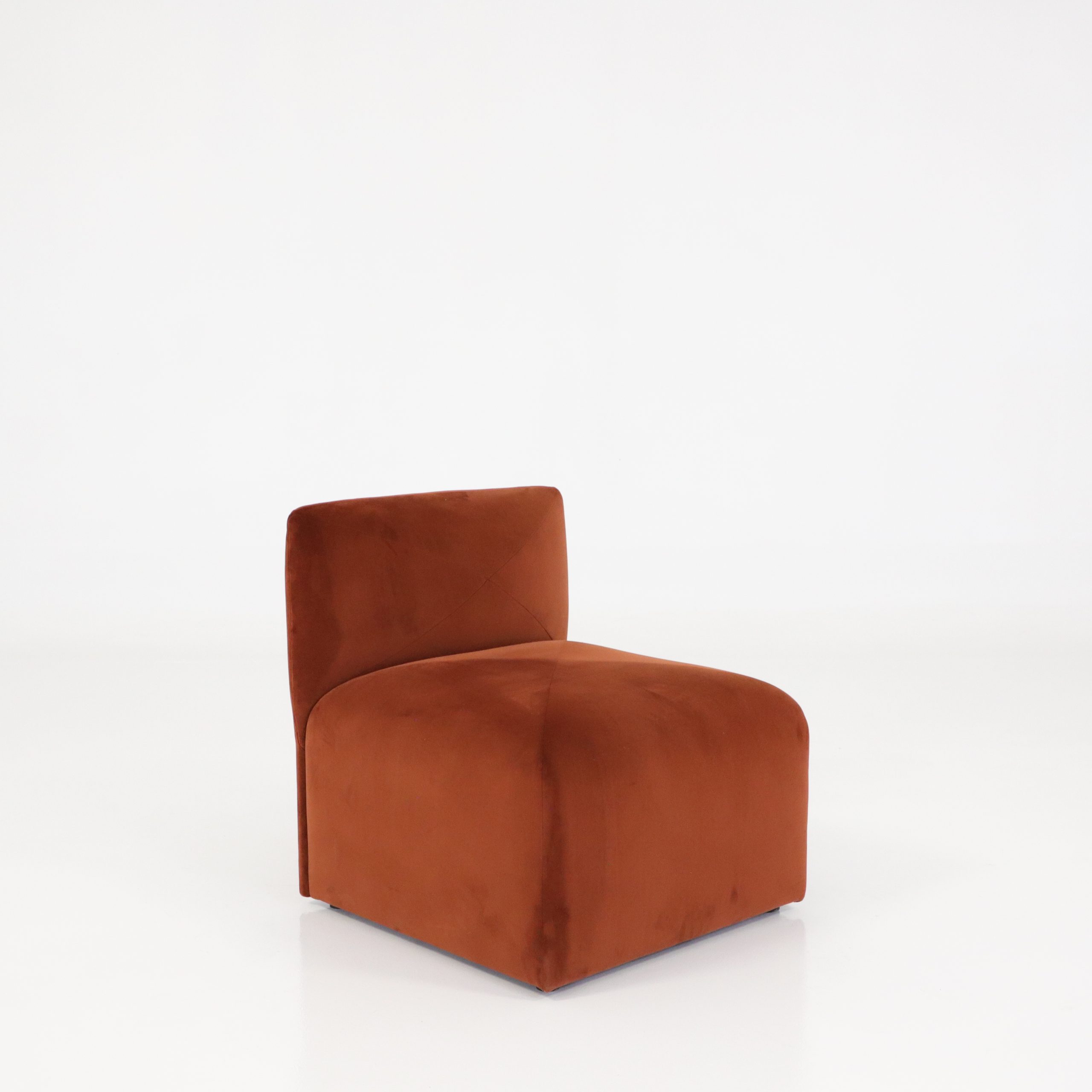 Med denna soffmodul kan du enkelt bygga soffor eller enskilda fåtöljer utifrån rummets kapacitet. Modulerna är klädda i slitstark sammet av hög kvalitet i en rostbrun ton vilket gör Blob både till en hållbar och stilfull investering.