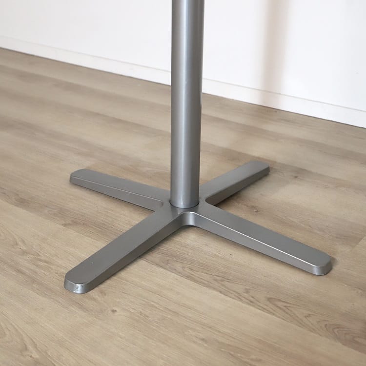 Ståbordet Billsta från IKEA kommer med bordsskiva i vit melamin och fasad träkant, vilket är motståndskraftigt mot värme och repor men bidrar även till att bordet är enkelt att rengöra. Bordets gråa stativ ger en mjuk övergång mellan bordsskiva och stativ.