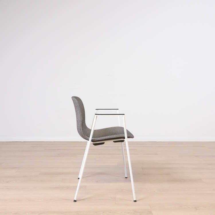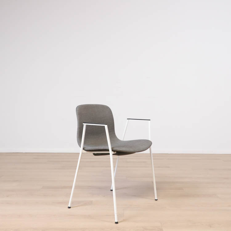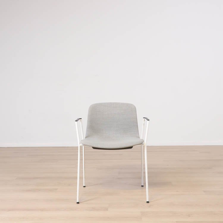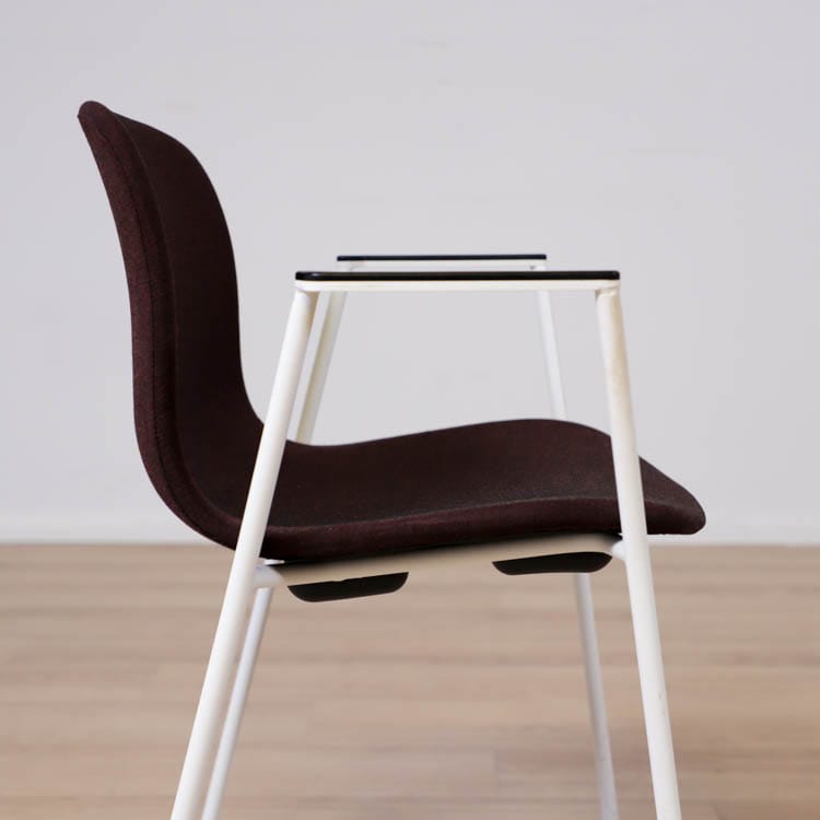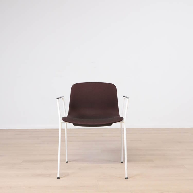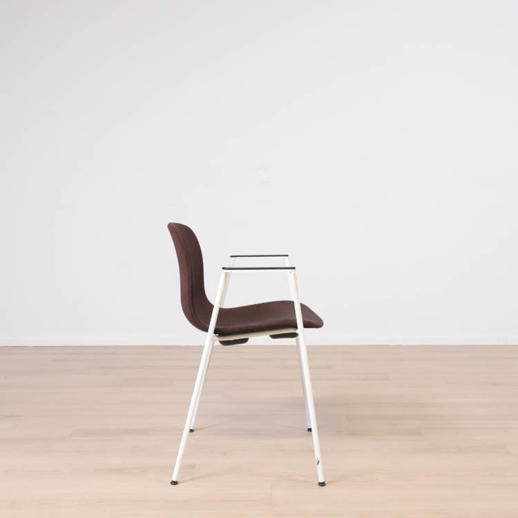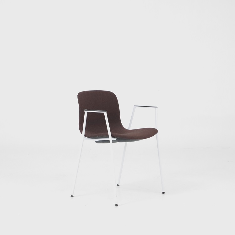 Med en något mer formell framtoning än andra design i kollektionen, har About A Chair AAC 19 smala, eleganta ben och armstöd som ramar in sitsen. Stolens upprätta, något rundade sits erbjuder utmärkt komfort, medan den öppna framsidan förmedlar en inbjudande uttryck. Ben och armstöd i pulverlackerad metall, medan sitsen i tyg, denna i grå eller brunröd. Dess förfinade siluett och mångfald av designkombinationer gör den idealisk att använda vid konferenser, i matsalar eller i hemmakontorsmiljöer.