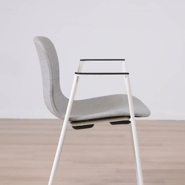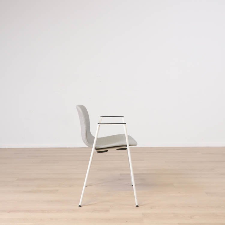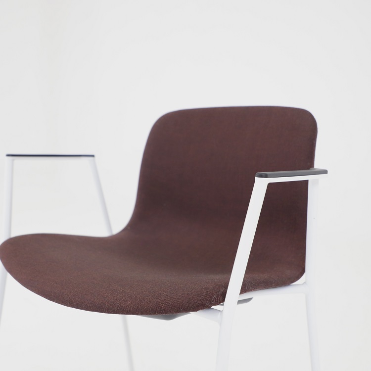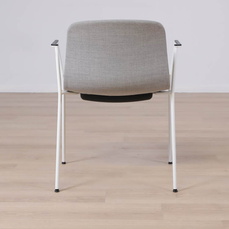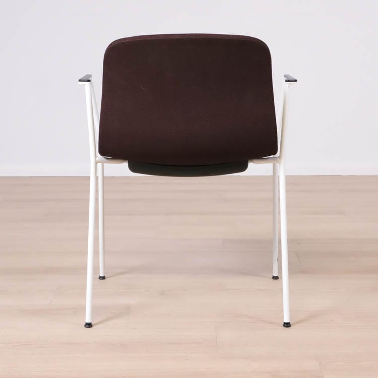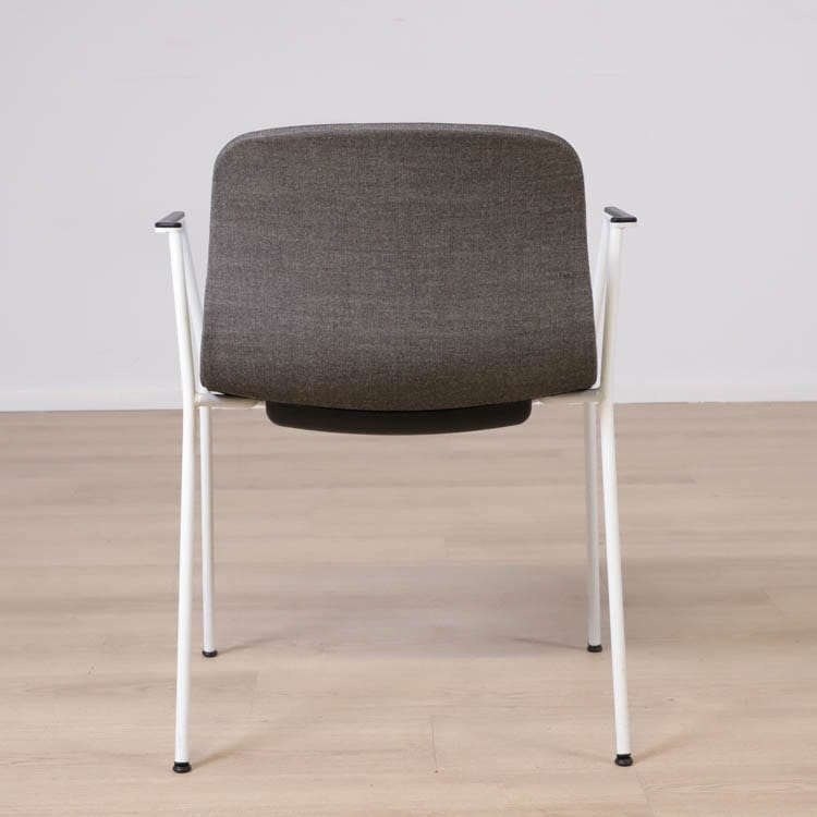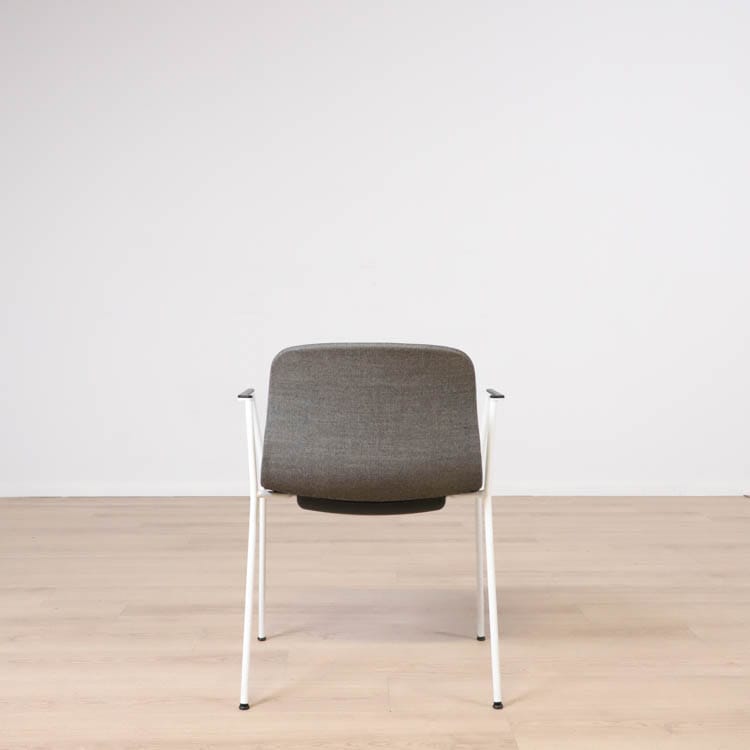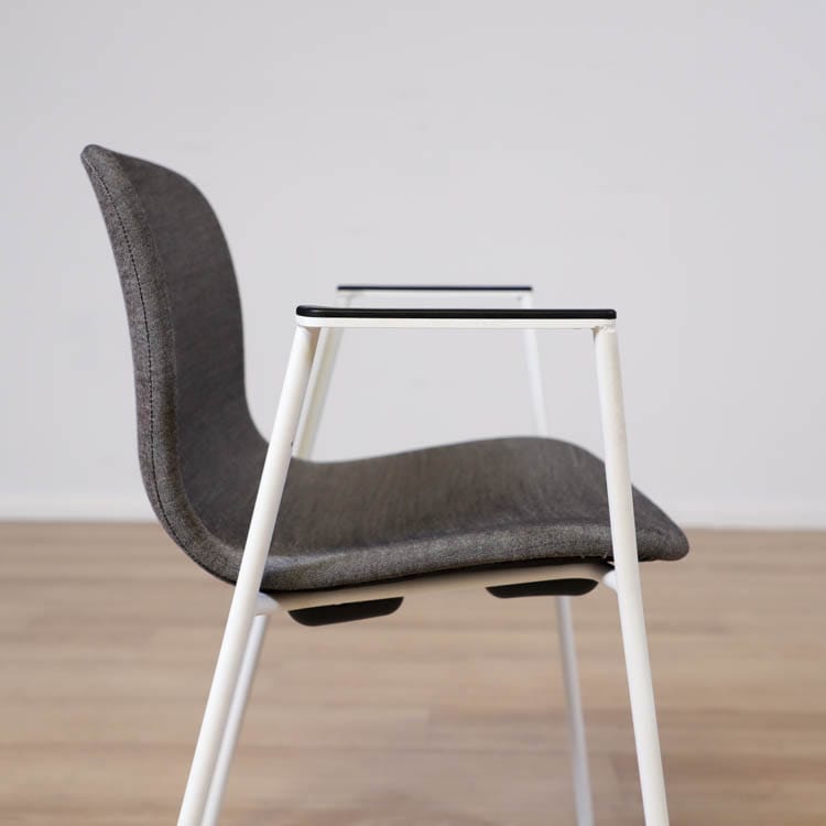 Med en något mer formell framtoning än andra design i kollektionen, har About A Chair AAC 19 smala, eleganta ben och armstöd som ramar in sitsen. Stolens upprätta, något rundade sits erbjuder utmärkt komfort, medan den öppna framsidan förmedlar en inbjudande uttryck. Ben och armstöd i pulverlackerad metall, medan sitsen i tyg, denna i grå eller brunröd. Dess förfinade siluett och mångfald av designkombinationer gör den idealisk att använda vid konferenser, i matsalar eller i hemmakontorsmiljöer.
