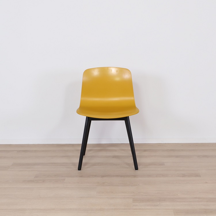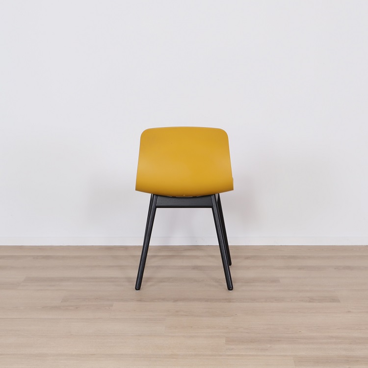 Sitsen består av polypropylen och benen är i svartbetsad ek. Att stolen inte har något armstöd gör att den blir ren och tydlig i sin formspråk, samtidigt som de utställda benen skapar en stabil bas som håller under många år.