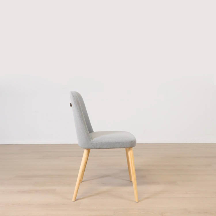 Aston 01 från deNONA är en stoppad stol i elegant grått tyg med dekorativ läderhandtag i ryggen. Den stoppade sitsen möts upp av kvalitativa och hållbara träben i ask. Handtaget i ryggen är inte bara en vacker detalj utan gör också stolen lätt att manövrera och flytta. Denna kombination av materialval gör att rummet där den placeras kommer kännas stilenlig och representativ. Aston 01 sitter du bekvämt i och som passar utmärkt som matstol i dom flesta miljöer.