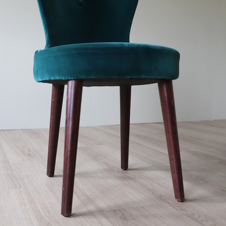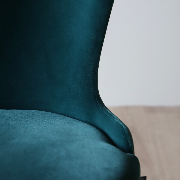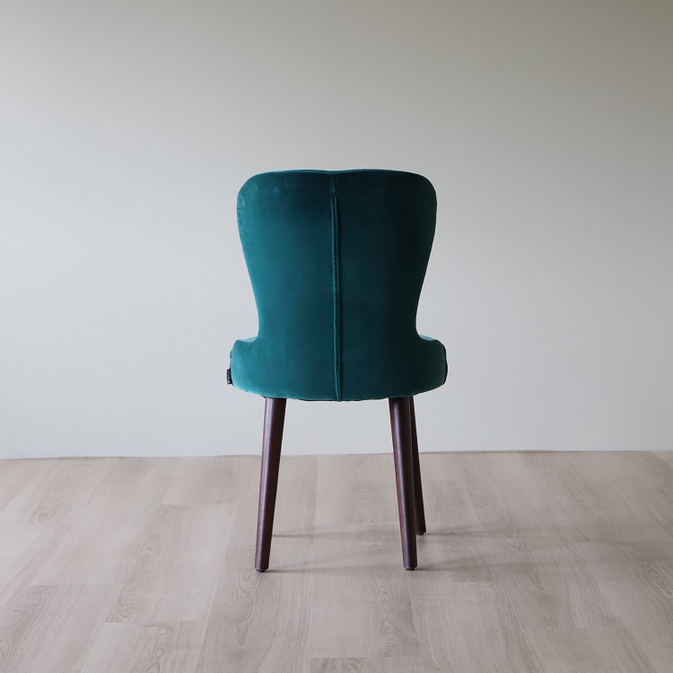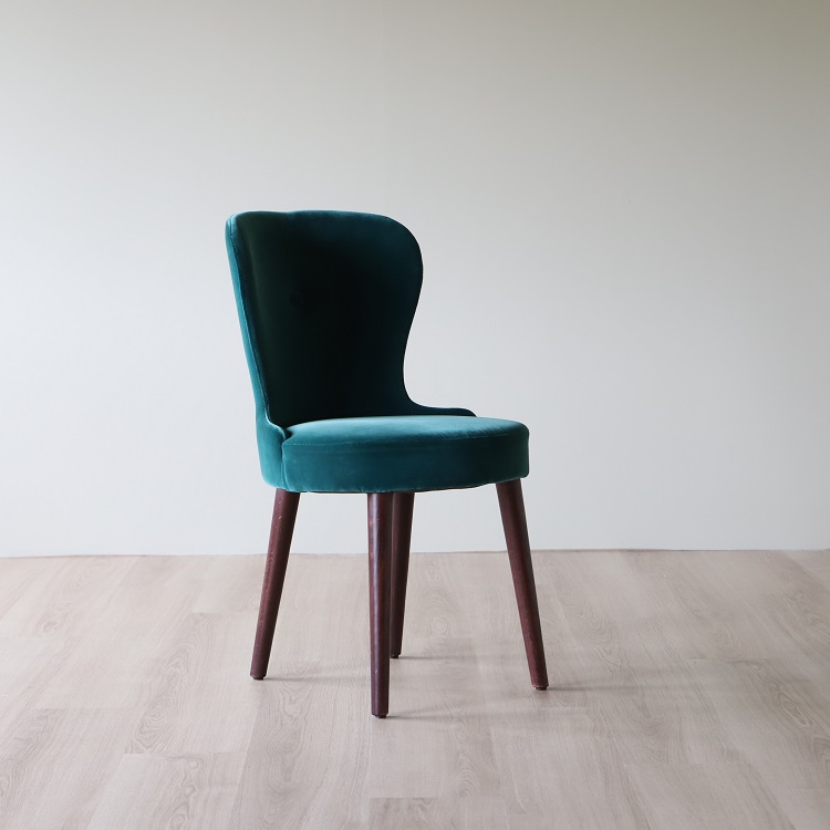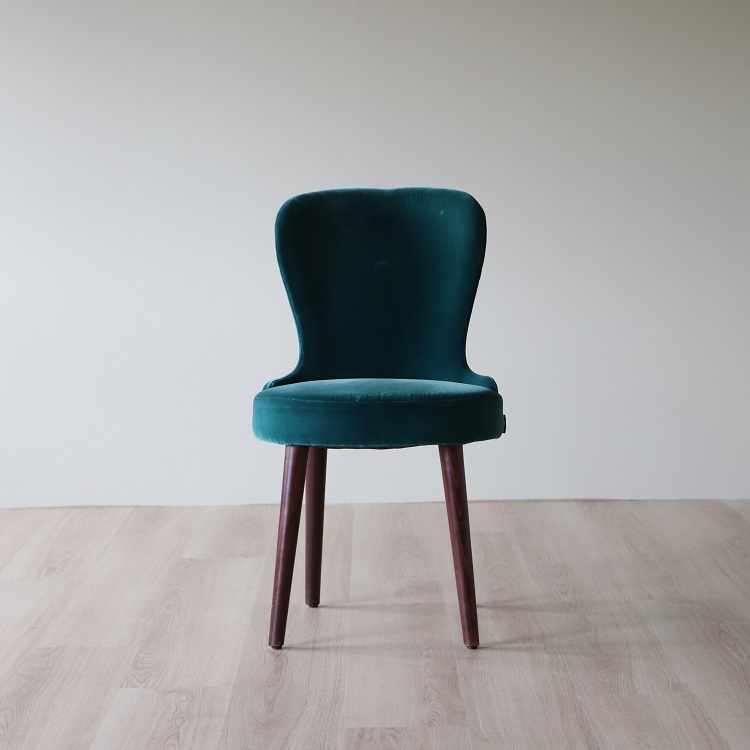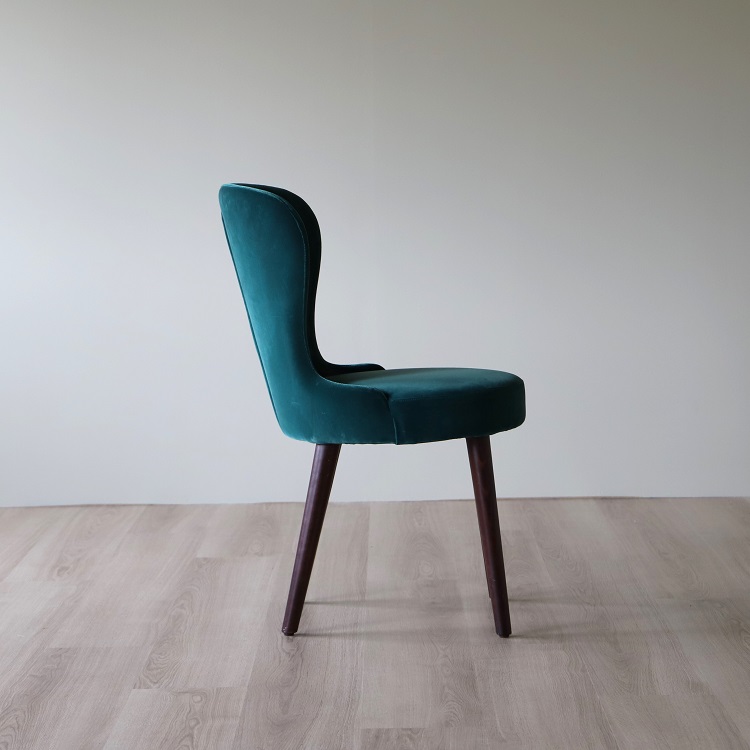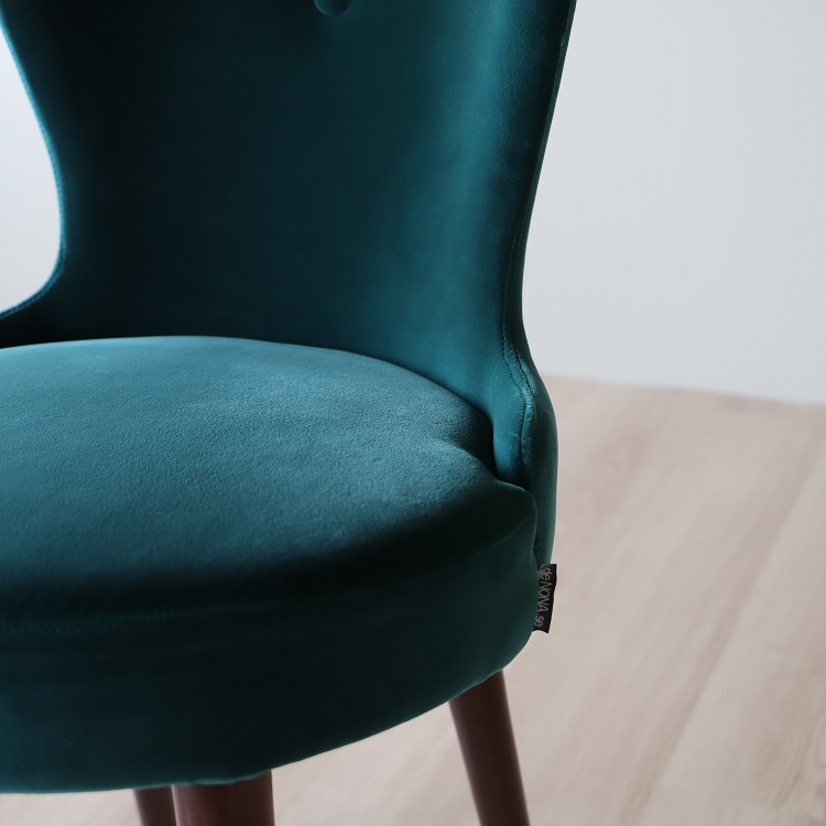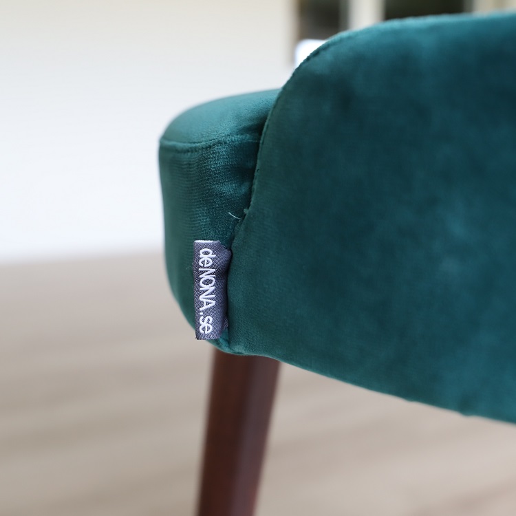 Twist- Caféstolen som kombinerar färg, textur och trädetaljer på ett estetiskt tilltalande sätt. I denna stol sitter du bekvämt med sinnesro och du får en upplevelse av omfamning och lyx. Detta utförande kommer i en djup grön sammetsklätt tyg på sittdelen tillsammans med ben i valnöt, två materialval och färgsättningar som kompletterar varandra på ett ypperligt sätt.