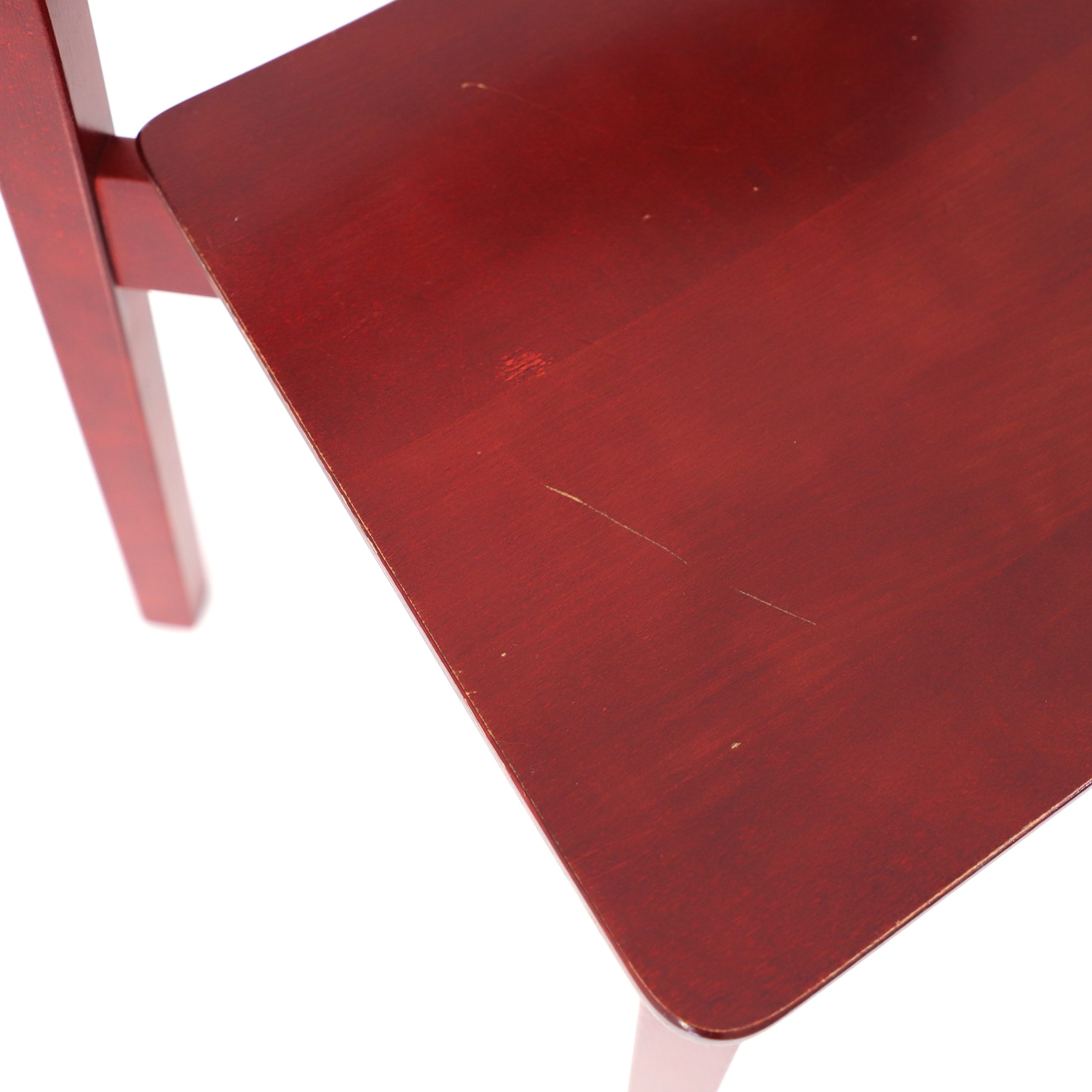 Ge ditt rum en tidlös karaktär med denna eleganta stol från Balzar Beskow. Stolen har en klassisk skandinavisk design med rena linjer, vackert böjd rygg och en djup röd finish som skapar både värme och personlighet.