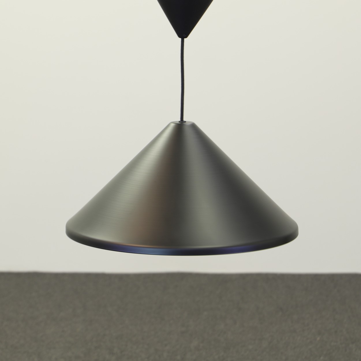 Enkel och stilfull taklampa i helsvart utförande som passar utmärkt över såväl matbord, både hemma och på arbetsplatsen, som i konferensrummet eller loungeutrymmet. Matt, borstad svart yta med en mindre ytterkant som begränsar ljuset och ger en ombonad känsla. Tillhörande behållare för sladden i svart medföljer, som diskret gömmer undan överflödet av sladden och uttaget i taket samt gör lampans höjd flexibel, utan att tumma på den stilrena designen.