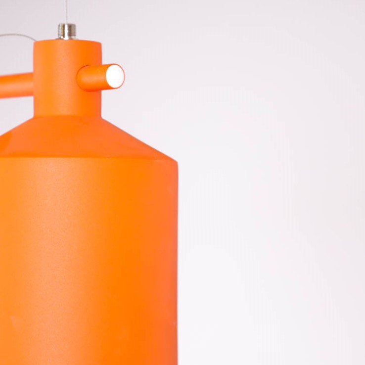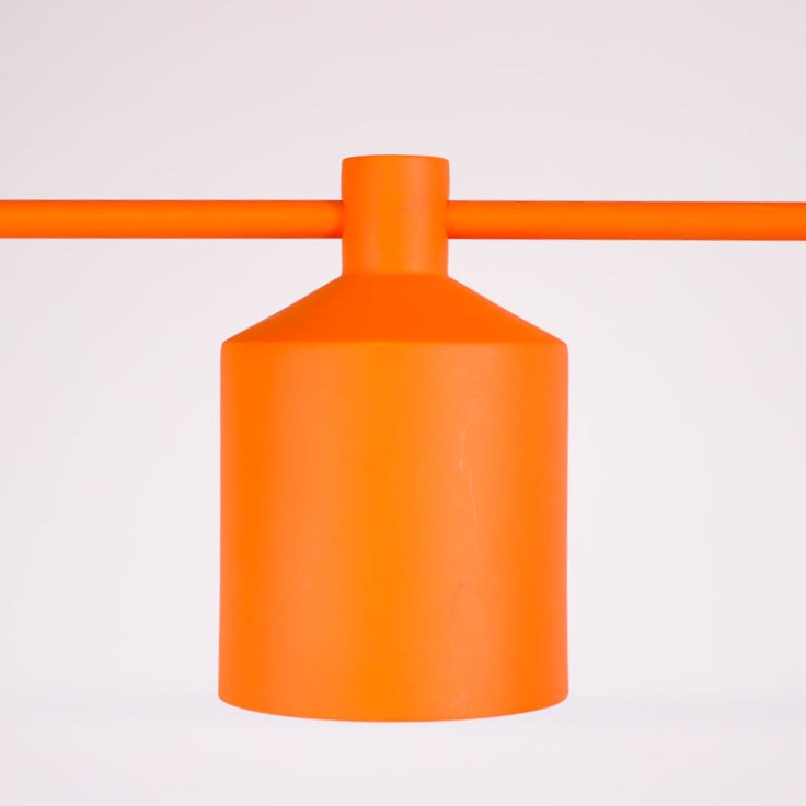 Taklampan Silo Trio från Zero har en minimalistisk design, inspirerad av en spannmålssilo, som ger den dess klassiska uttryck med en exklusiv känsla. Den industriella formgivningen bryts av mot den orangefärgade ytan, som ger lampan en lekfull kontrast.