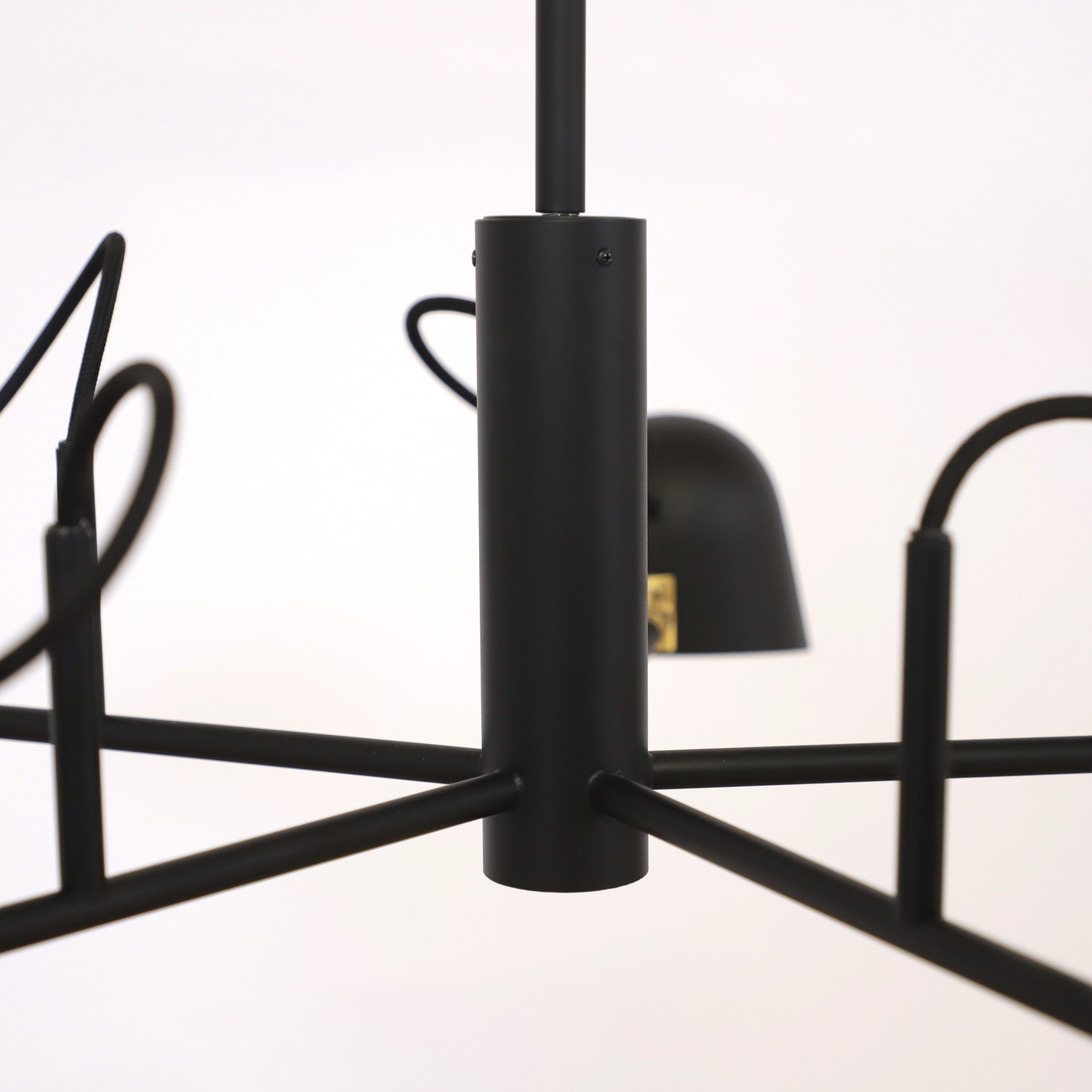Skapa ett starkt designstatement med Streck Krona 5 från Örsjö Belysning. En modern takkrona som kombinerar industriell enkelhet med skulptural precision. Denna pendelarmatur är en del av den hyllade Streck-serien, formgiven av Joel Karlsson, och kännetecknas av sin minimalistiska estetik, mattsvarta yta och genomtänkta detaljer i mässing.