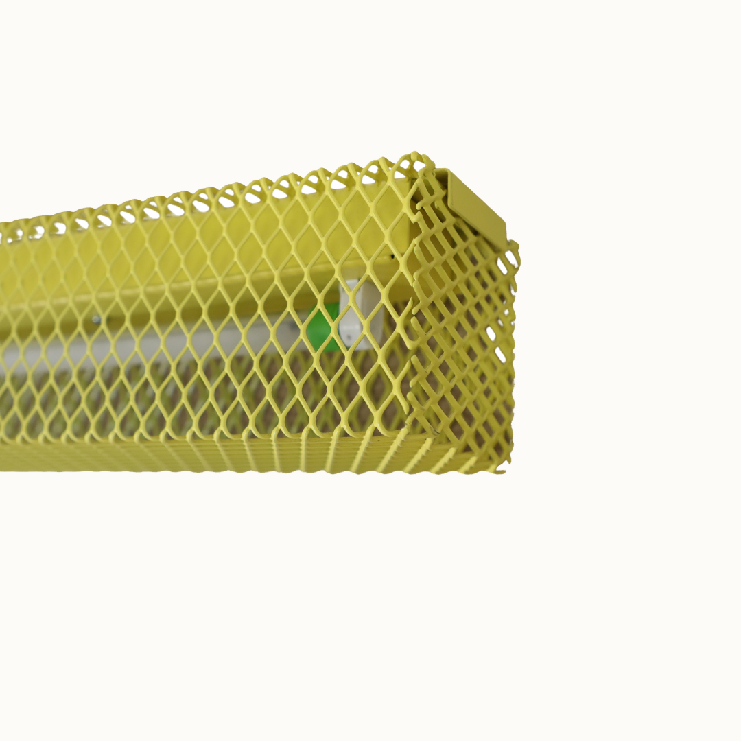 Takpendeln Grid från svenska Zero kombinerar modern design med industriell karaktär. Tillverkad i sträckmetall ger den ett avskalat och unikt uttryck som både är iögonfallande och funktionellt. Här presenterad i en livfull gul kulör.