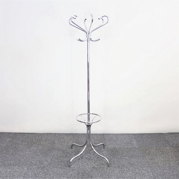 En tamburmajor i riktigt retro utförande som dessutom ger gott om utrymme att hänga jackor, halsdukar och andra ytterplagg på. Ringen vid Butlers fot erbjuder även möjlighet att ställa dit paraplyn. Tillverkad i förkromat stålrör är den både stabil och tålig och står alltid redo att ta emot din jacka när du kommer hem, precis som en riktig butler!
