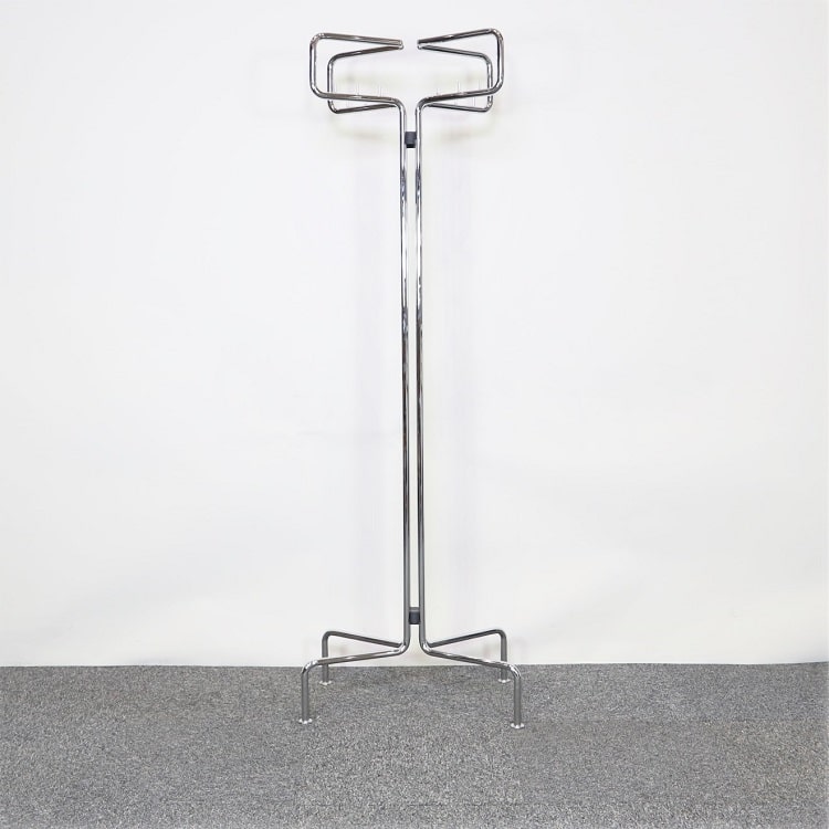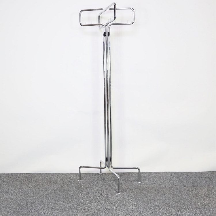 En tamburmajor från Materia med stomme i stål och mycket plats för galgar. Designad av Kersti Sandin och Lars Bülow. Kersti är en känd arkitekt och industridesigner som arbetat med svensk möbel- och belysningsindustri sedan 1978. År 1992 grundade hon tillsammans med designern Lars Bülow designföretaget Materia. Materia brinner för nyskapande och miljöfrågor och tillverkar sina produkter i Tranås.