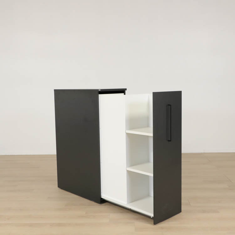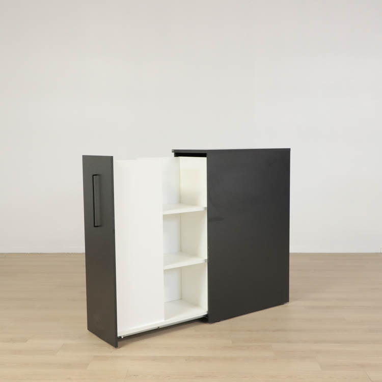 Towerförvaringen Hold från EFG är en funktionell förvaring som enkelt passar in på arbetsplatsen med sin minimalistiska design. Dess raka linjer, svarta utförande gör sig lika väl i kontorslandskapet som i hemmakontoret. Hold har förvaring åt vänster och höger och ett smart förvaringssystem där du lätt har översikt över innehållet. En platsbesparande möbel som rymmer många pärmar och viktiga dokument.