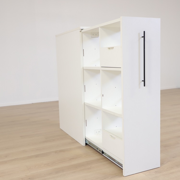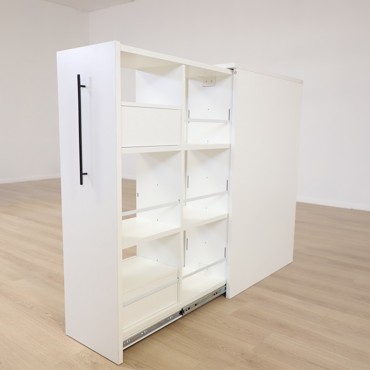 Denna towerförvaring är ett perfekt exempel på platseffektiv förvaring. Ett smart förvaringssystem där du lätt har översikt över innehållet eftersom det öppnas på samma sätt som en låda rullas ut. Med sitt generösa antal fack och lådor, maximerar du möjligheterna att förvara dina tillhörigheter. En platsbesparande möbel som rymmer många pärmar och viktiga papper.