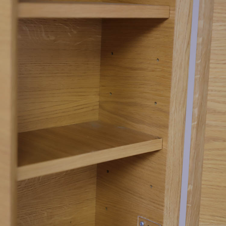 På skåpets dörr i ena hörnet finns en liten slitning träet. Detta är inget som påverkar dess kvalitet eller hållbarhet.
